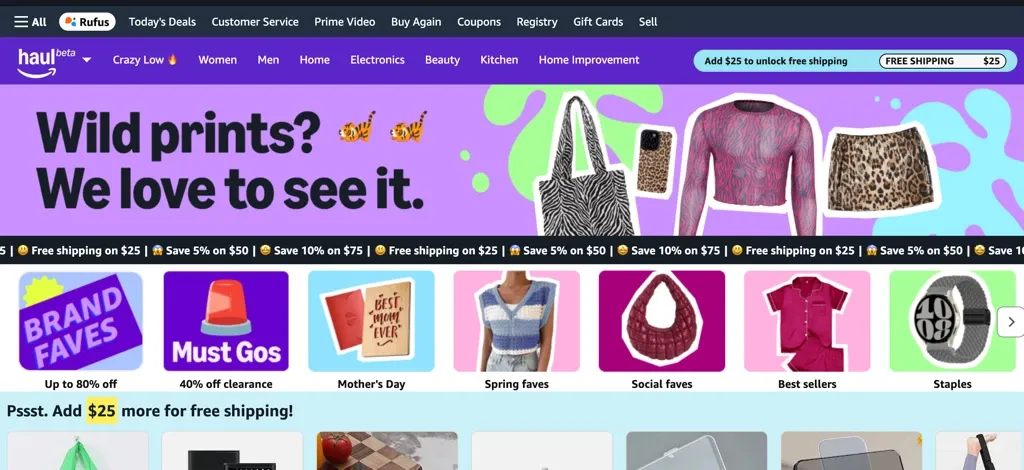 Negli USA Temu perde i colpi per mano di HAUL, la versione Amazon dello shop cinese. In futuro Haul potrà guadagnare ancora di più market share utilizzando la logistica Amazon e bypassando i dazi. Questa notizia mi ha preso di contropiede perchè non sapevo nemmeno che esistesse. Ti lascio il print screen, un link (Amazon.com/haul/store ).