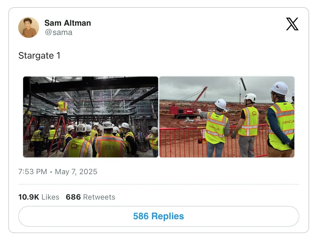 Sempre Sam Altman posta questo: il progetto Stargate è ufficialmente partito. Potrebbe essere questo il prossimo Skynet?