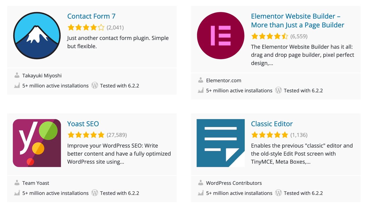 Guardiamo i plugin più installati di wordpress, abbiamo con oltre 5 milioni di installazioni: