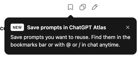 Atlas ha aggiunto la funzionalità "salva prompt". una piccola cosa ma utile... mi piacerebbe anche un sistema di tag.